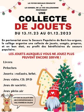En partenariat avec le Secours Populaire de Bort-les-Orgues, le collège organise une collecte de jouets.
