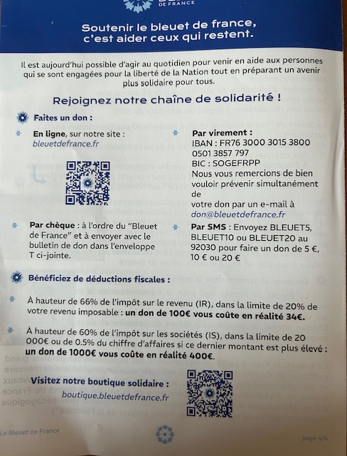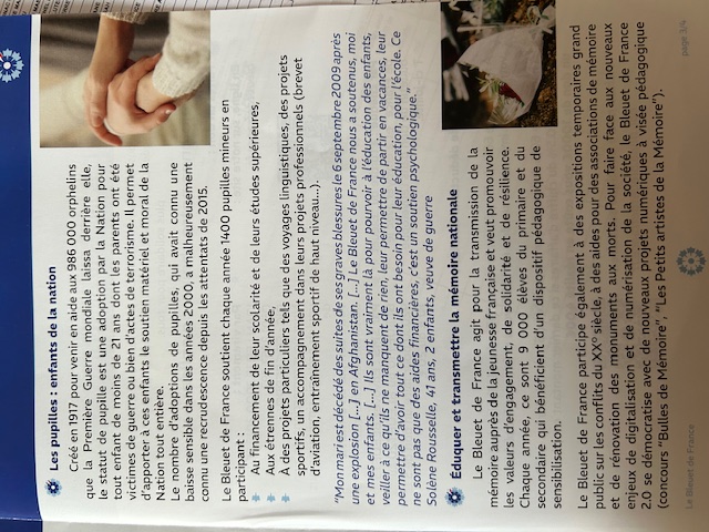 Le collège s'unit à l'association Le Bleuet de France et organise une vente de badges "bleuet" au retour des vacances de pâques. Si vous le souhaitez vous pourrez acquérir ce Bleuet en faisant un don.